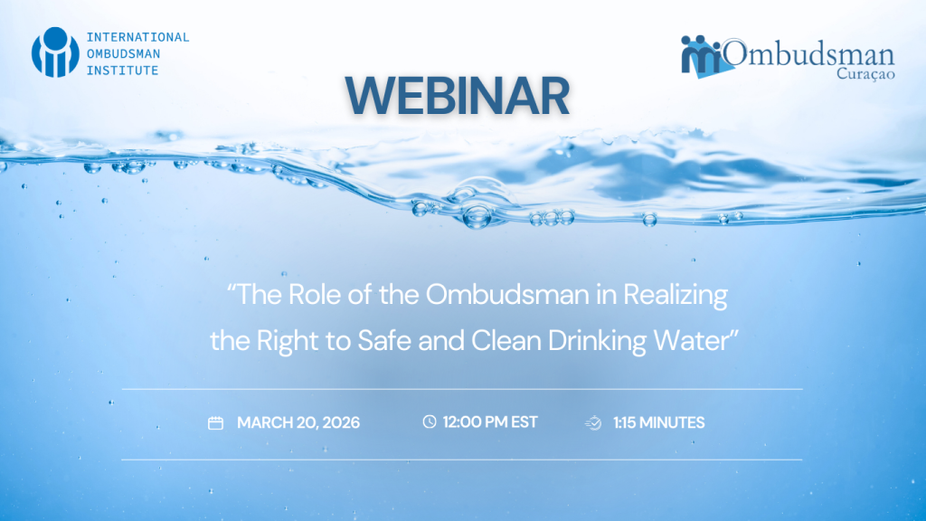 Op vrijdag 20 maart 2026 organiseert de Ombudsman van Curaçao, in samenwerking met het International Ombudsman Institute (IOI), een webinar in het kader van Wereldwaterdag (22 maart).